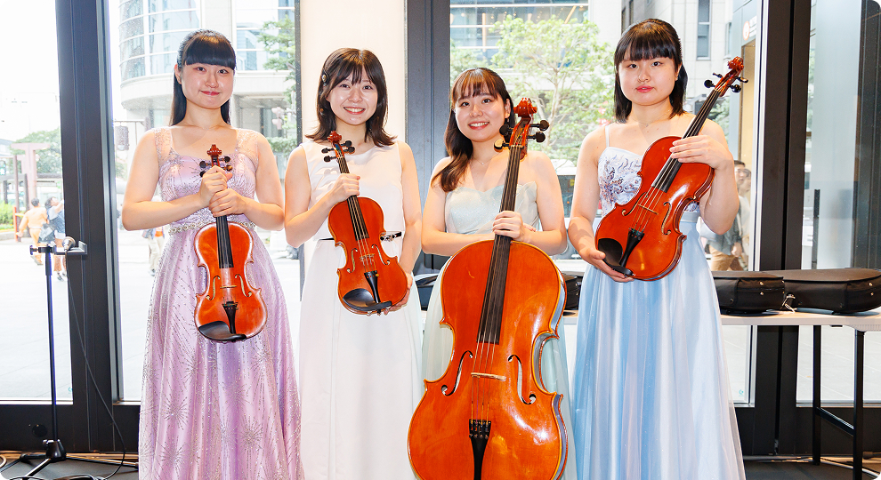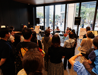 いつもはホールなど室内での演奏が多いのですが、こうした開放感のあるオープンスペースでの演奏も大好きです。「どんな音楽が合うかな?」と、会場の雰囲気を想像しながらみんなで曲目を選ぶのも楽しかったですね。