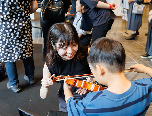 アクロス・ミュージックキャラバンは、アクロス福岡が文化活動の活性化を目的として、福岡県内のミュージアム(美術館・博物館など)と連携して開催するコンサートで、クラシックの美しい音色がまちの景色を彩ります。子どもから大人までが楽しめる楽器体験も併せて実施しました。